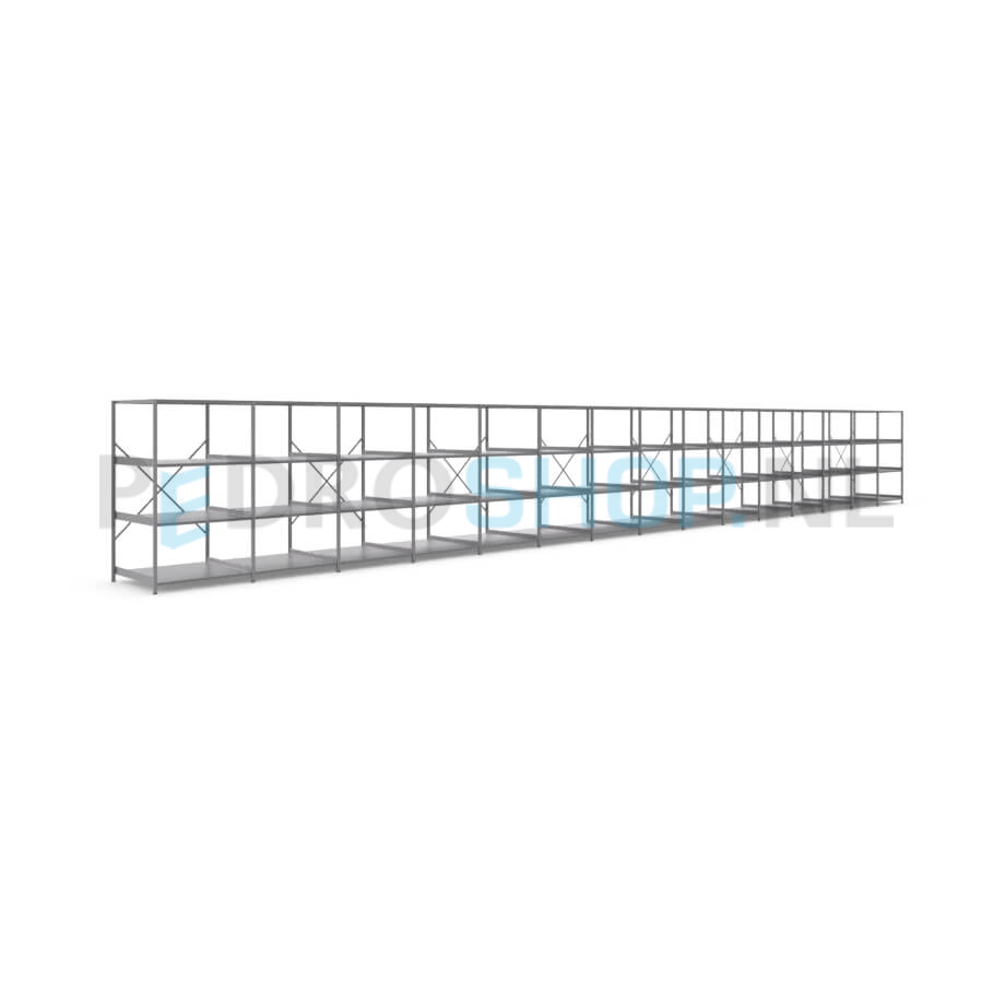 Metalen stellingkast: 180cm (h) x 100cm (d) x 1512.6cm (l)