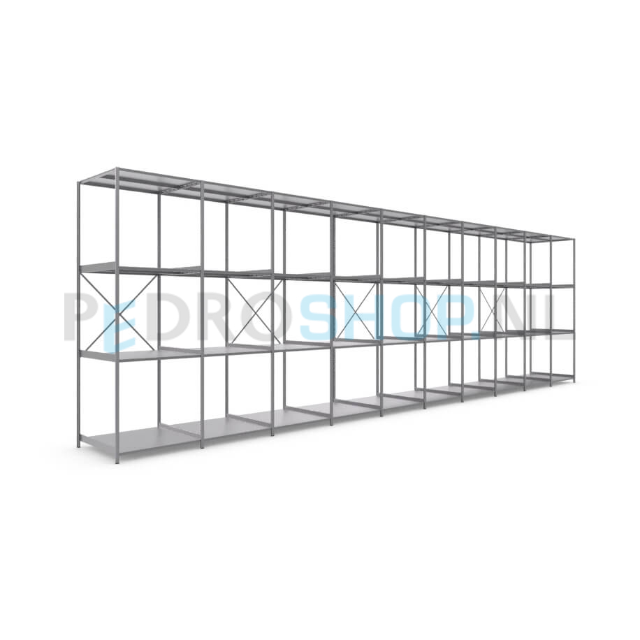 Metalen stellingkast: 300cm (h) x 100cm (d) x 1009.6cm (l)