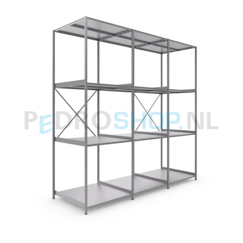 Metalen stellingkast: 300cm (h) x 100cm (d) x 305.4cm (l)