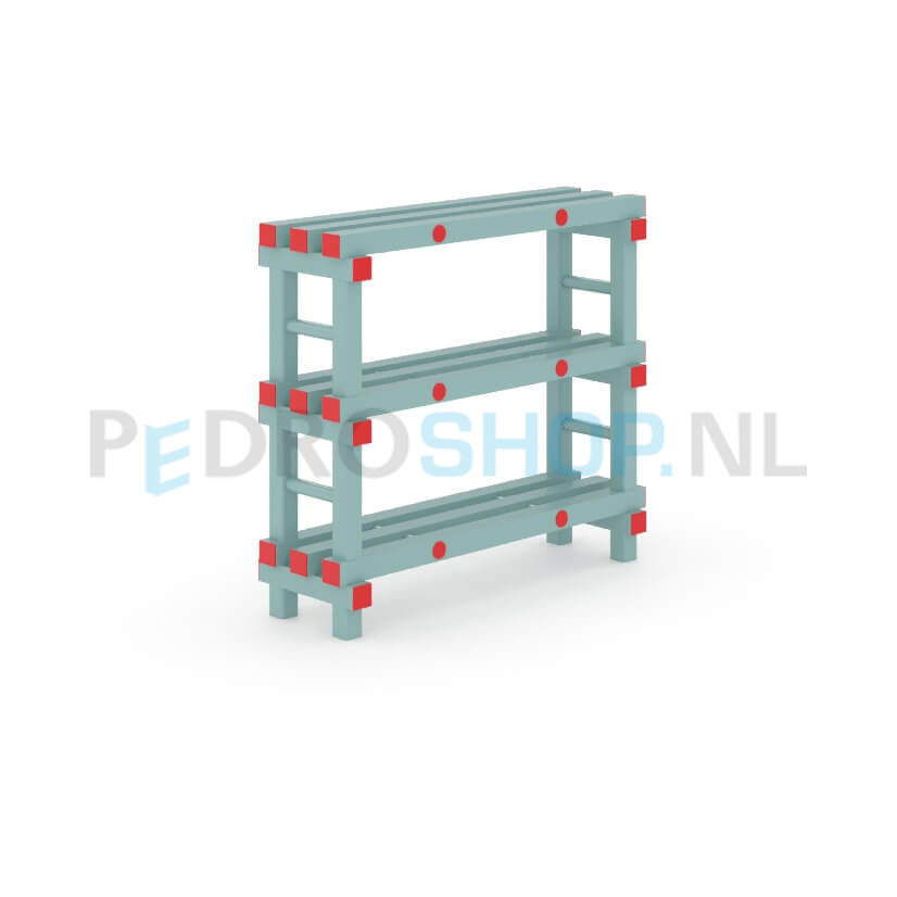 Kunststof stelling: 87cm (h) x 30cm (d) x 100cm (l)