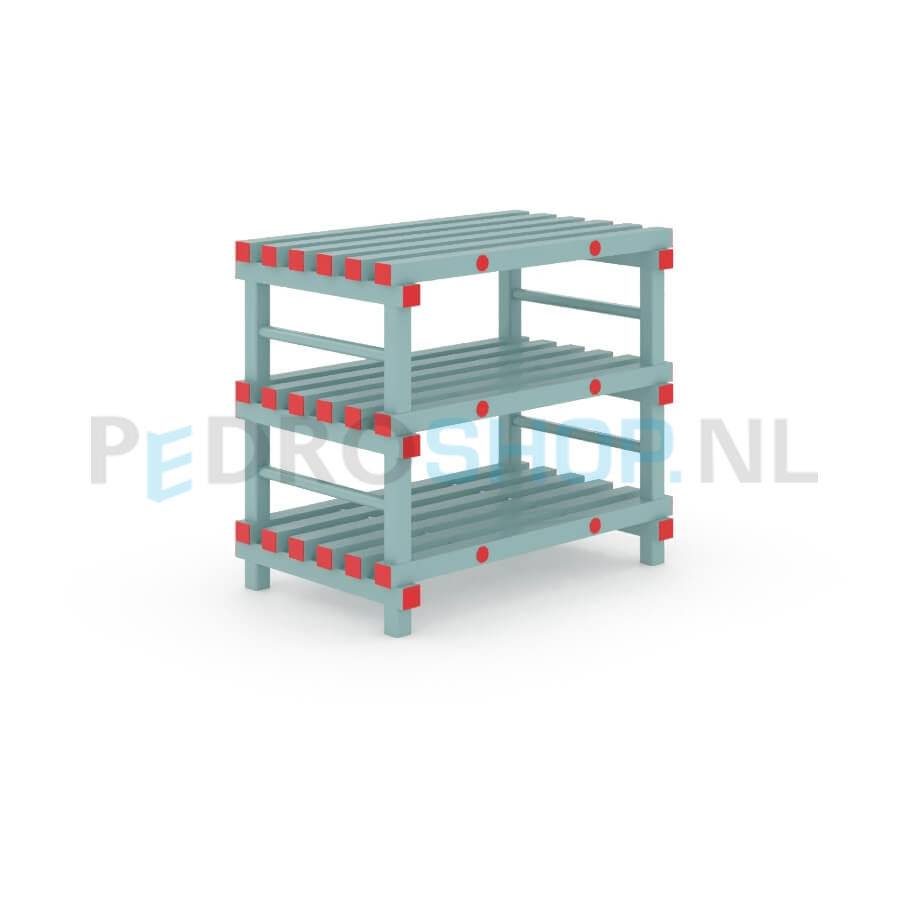 Kunststof stelling: 87cm (h) x 60cm (d) x 100cm (l)
