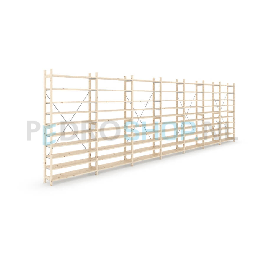 Houten stellingkast Easyrek: 210cm (h) x 30cm (d) x 703cm (l)