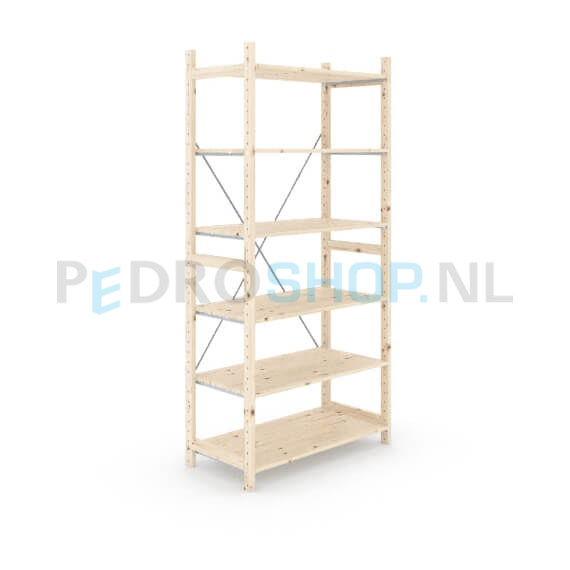 Eigen label houten stellingkast, dus goedkoop, flexibel en snel leverbaar! De onderdelen van de houten stellingen van ons eigen label zijn gemaakt van eersteklas Oost-Europees vurenhout en garanderen daarom jarenlang gebruiksgemak. Met de houten legbordstellingen en houten rekken kunt u uw magazijn eindeloos aanpassen, herinrichten en uitbreiden. U kiest voor betaalbare houten rekken, flexibiliteit met een goede kwaliteit! De houten stellingkast kunt u via onze handige configurator in een aantal stappen online samenstellen. Online uw houten stellingkast bestellen is nog nooit zo makkelijk geweest. Heeft u een groot archief in te richten met houten stellingen? Wij maken graag een passende offerte. Houten stelling kopen? Dan bent u bij ons aan het juiste adres.