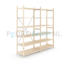 Eigen label houten stellingkast, dus goedkoop, flexibel en snel leverbaar! De onderdelen van de houten stellingen van ons eigen label zijn gemaakt van eersteklas Oost-Europees vurenhout en garanderen daarom jarenlang gebruiksgemak. Met de houten legbordstellingen en houten rekken kunt u uw magazijn eindeloos aanpassen, herinrichten en uitbreiden. U kiest voor betaalbare houten rekken, flexibiliteit met een goede kwaliteit! De houten stellingkast kunt u via onze handige configurator in een aantal stappen online samenstellen. Online uw houten stellingkast bestellen is nog nooit zo makkelijk geweest. Heeft u een groot archief in te richten met houten stellingen? Wij maken graag een passende offerte. Houten stelling kopen? Dan bent u bij ons aan het juiste adres.