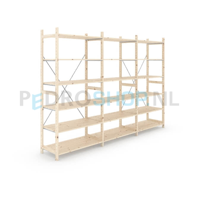 Eigen label houten stellingkast, dus goedkoop, flexibel en snel leverbaar! De onderdelen van de houten stellingen van ons eigen label zijn gemaakt van eersteklas Oost-Europees vurenhout en garanderen daarom jarenlang gebruiksgemak. Met de houten legbordstellingen en houten rekken kunt u uw magazijn eindeloos aanpassen, herinrichten en uitbreiden. U kiest voor betaalbare houten rekken, flexibiliteit met een goede kwaliteit! De houten stellingkast kunt u via onze handige configurator in een aantal stappen online samenstellen. Online uw houten stellingkast bestellen is nog nooit zo makkelijk geweest. Heeft u een groot archief in te richten met houten stellingen? Wij maken graag een passende offerte. Houten stelling kopen? Dan bent u bij ons aan het juiste adres.