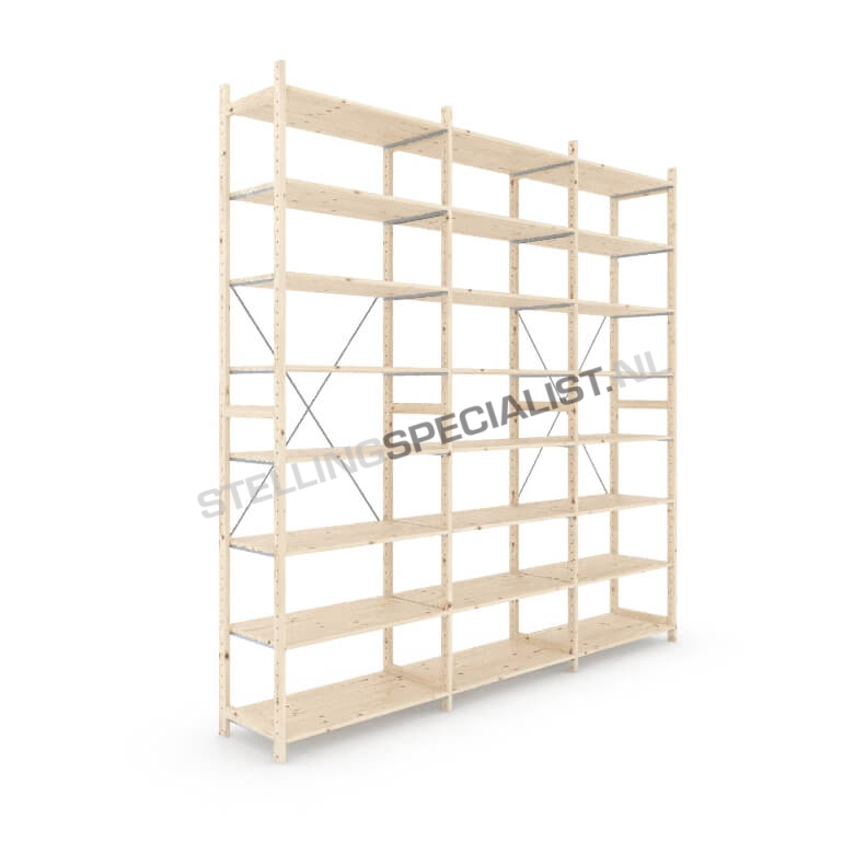 Houten stellingkast Easyrek: 300cm (h) x 50cm (d) x 303cm (l)